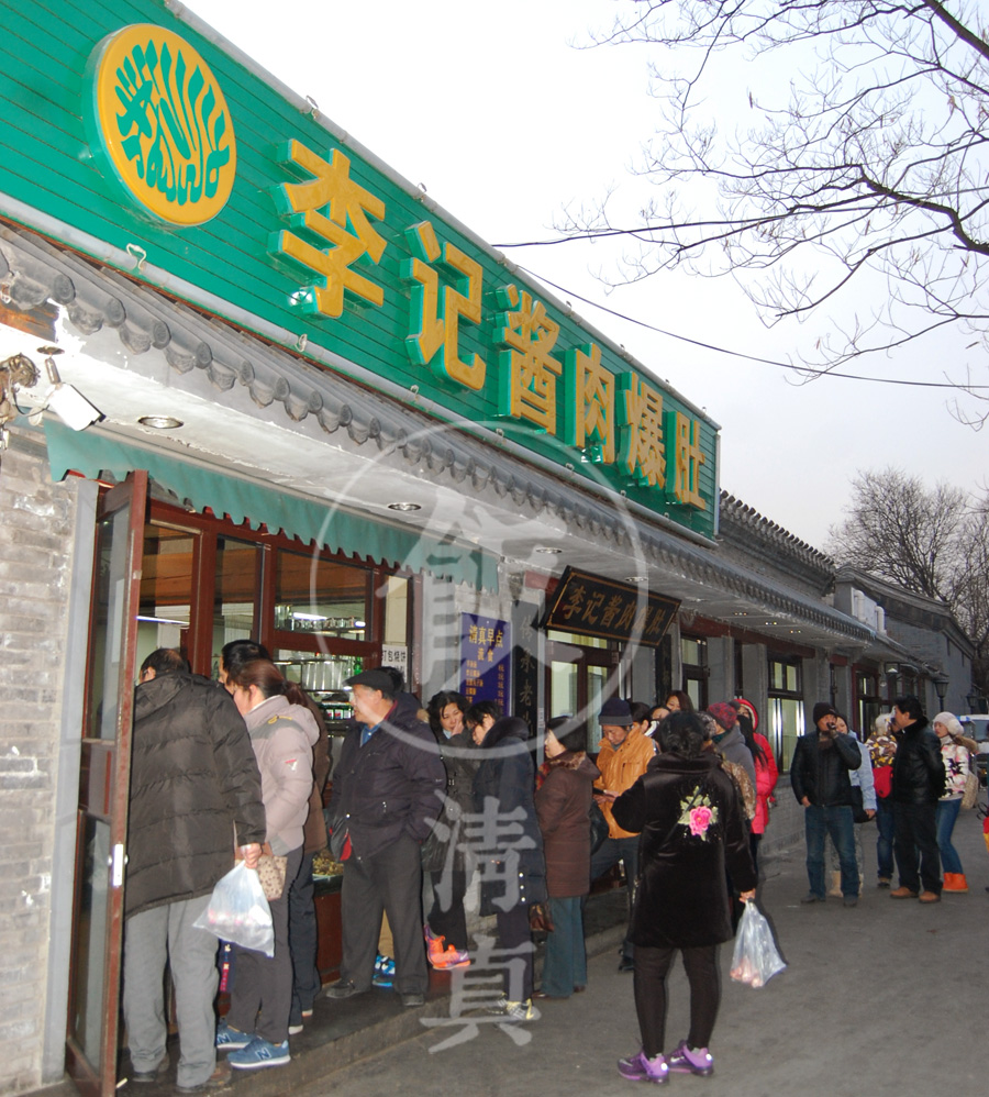 后海整個鴉兒胡同半條街都是李記的店鋪,燒餅店、李記羊肉店、李記醬肉爆肚、李記風(fēng)味美食餐廳、李記涮羊肉。這些都是老板二十年的用心經(jīng)營的成果,有人說或許二十年的時間可以擁有更多店面,而老板用平和溫婉的語氣說,“我不想我的店發(fā)展太快太多,我想開一家火一家,踏踏實(shí)實(shí)用心走穩(wěn)走好每一步”。看著門外在寒風(fēng)中執(zhí)著排隊的顧客,我想,一切都是有理由的……