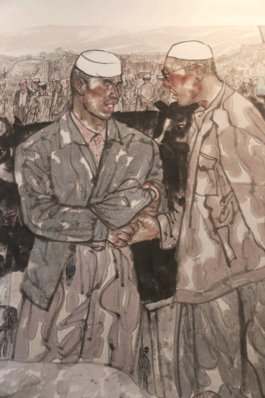 本次展出作品題材多樣,涉及少數民族地區秀麗風光、少數民族群眾精神面貌、生活習俗、節日風俗、宗教信仰等多個方面。在上百幅美術作品中,穆斯林民族作品數量也不少,來自維吾爾族、回族、東鄉族、柯爾克孜族等穆斯林民族的藝術家,用自己的畫筆,為大家呈現出當代中國穆斯林各民族的風貌。