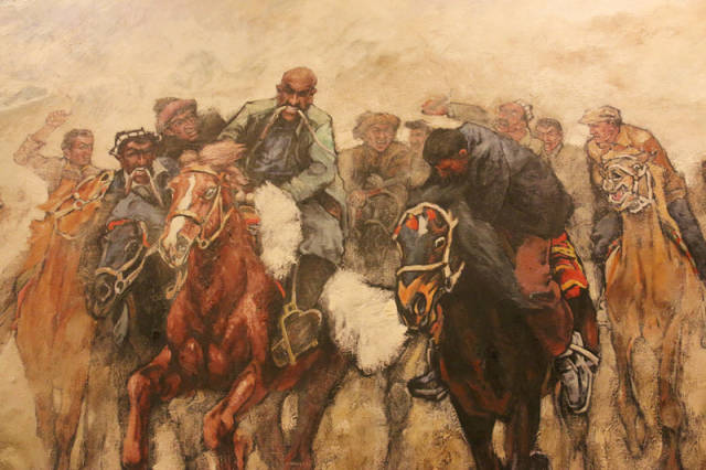 名稱:叼羊 類型:油畫 作者:帕爾哈提艾合買提(維吾爾族)