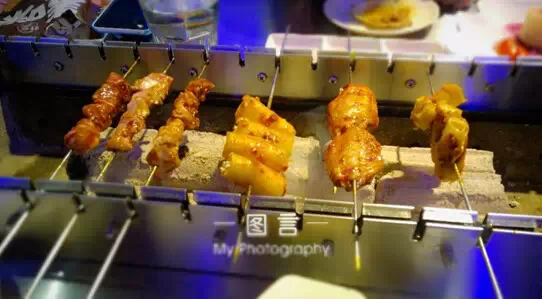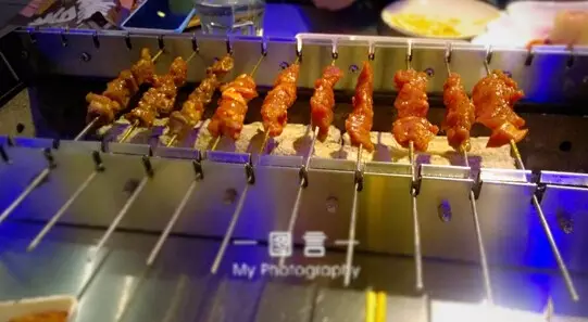 這是一間很有創意的燒烤店,有一種回歸純樸的感覺,光看外觀很難想象到這是一家燒烤店,很有情調,真有種遠古的感覺??緺t是純木炭的,上面有電機可以自動翻轉,這就解放了大家的雙手,對于愛吃卻懶得動手的小伙伴來說這應該是個福音吧,誘惑十足。晚上還有駐唱,享受美食的同時,你也可以聽著美妙的音樂。