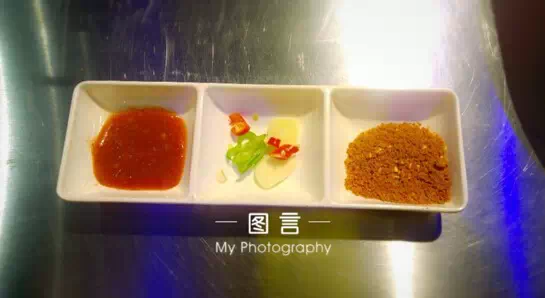 【料碗】料碗是由濕料+蒜片辣椒+干料這三樣組成的,當你覺得烤出來的串串味道淡的時候,你可以自行“填料”,包你滿意。