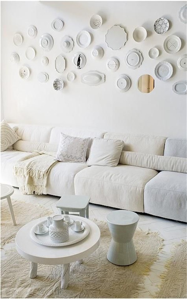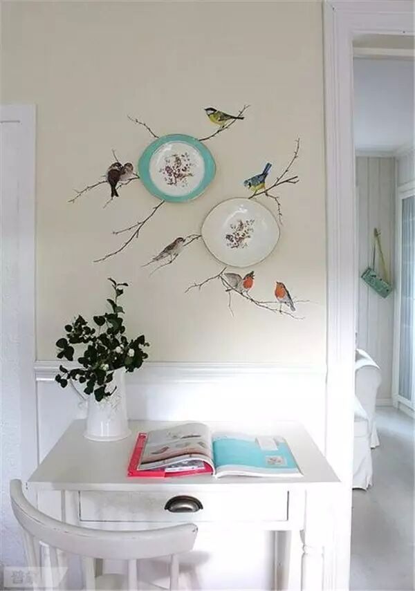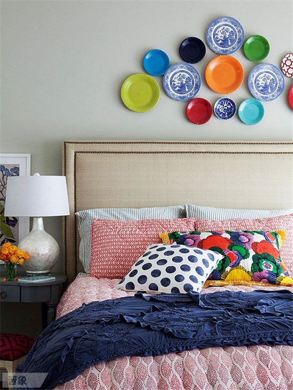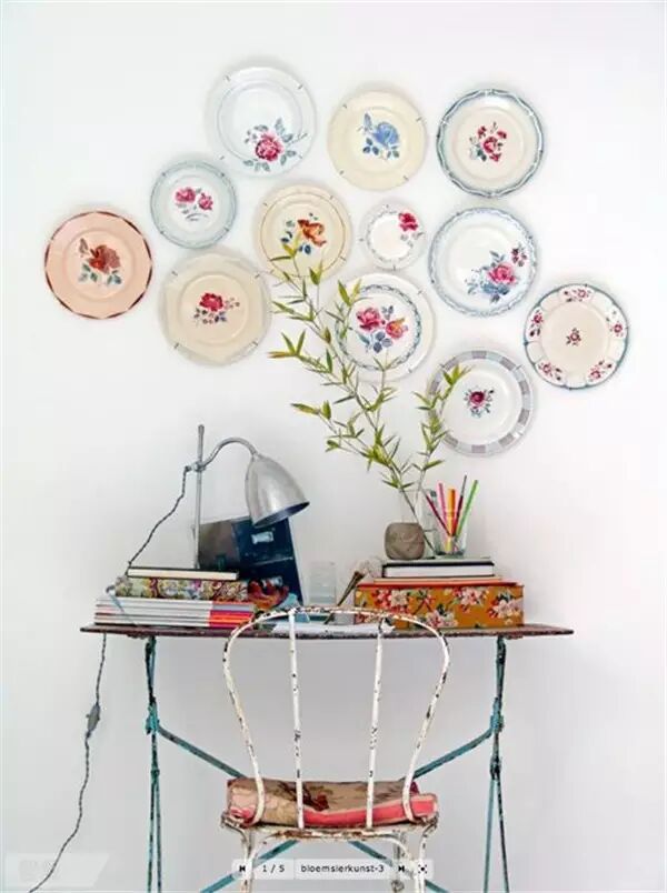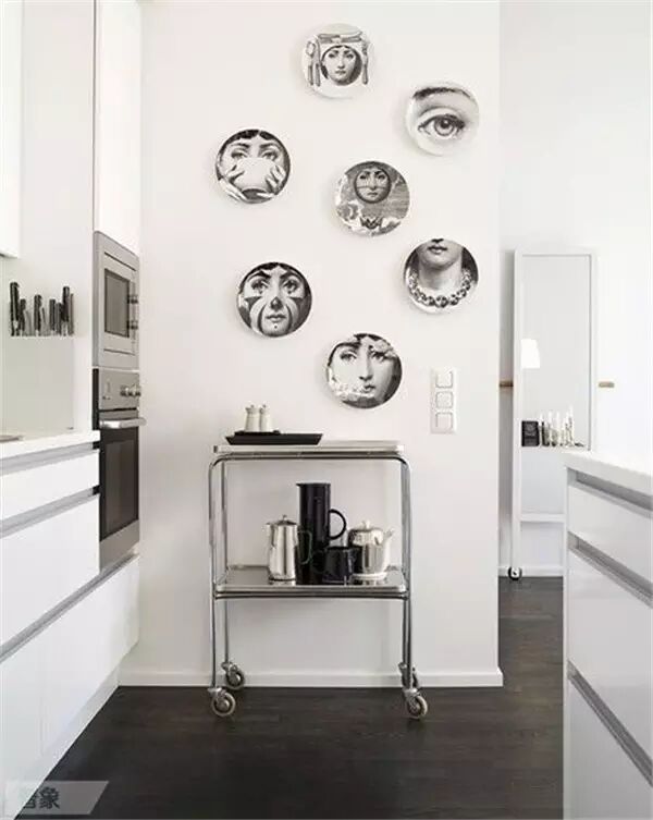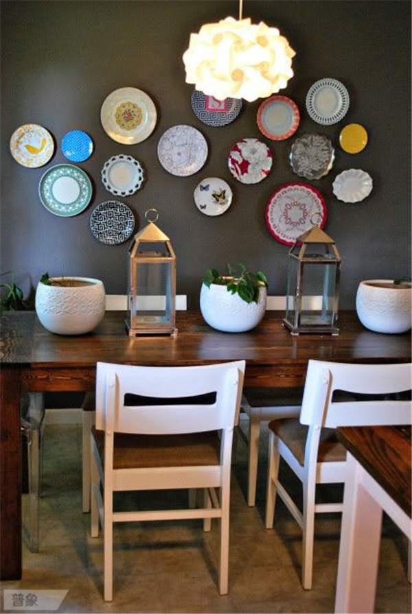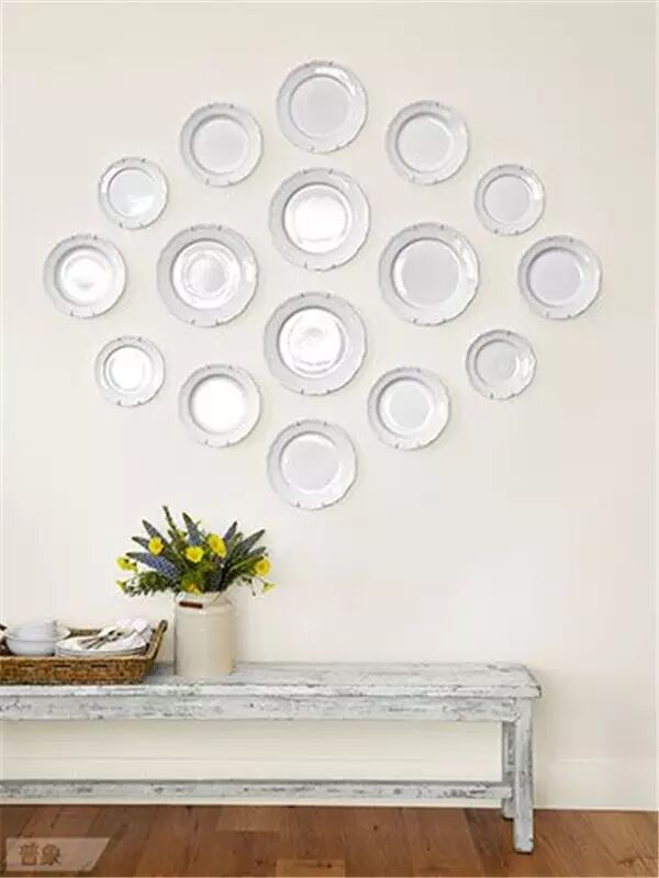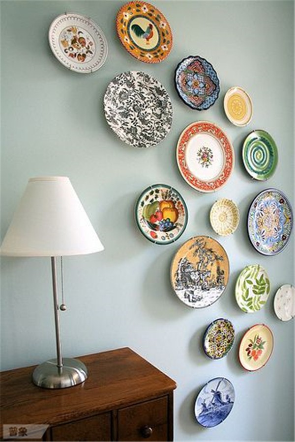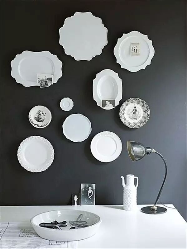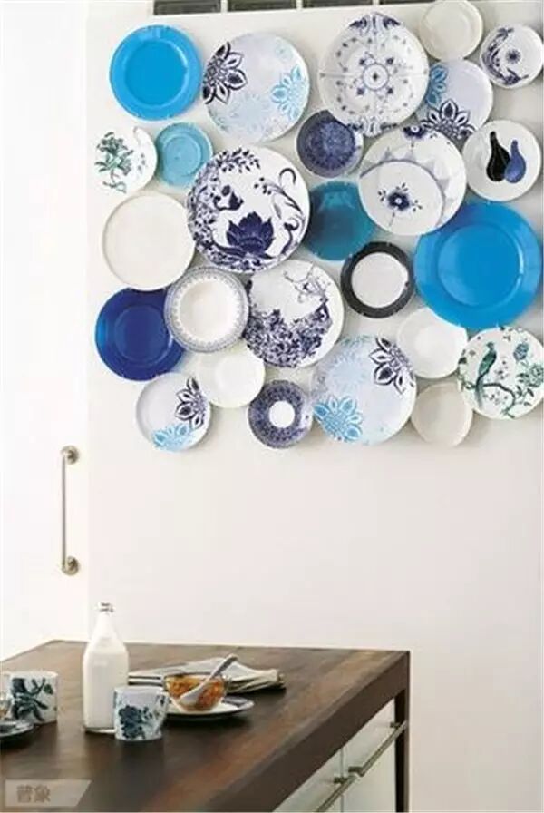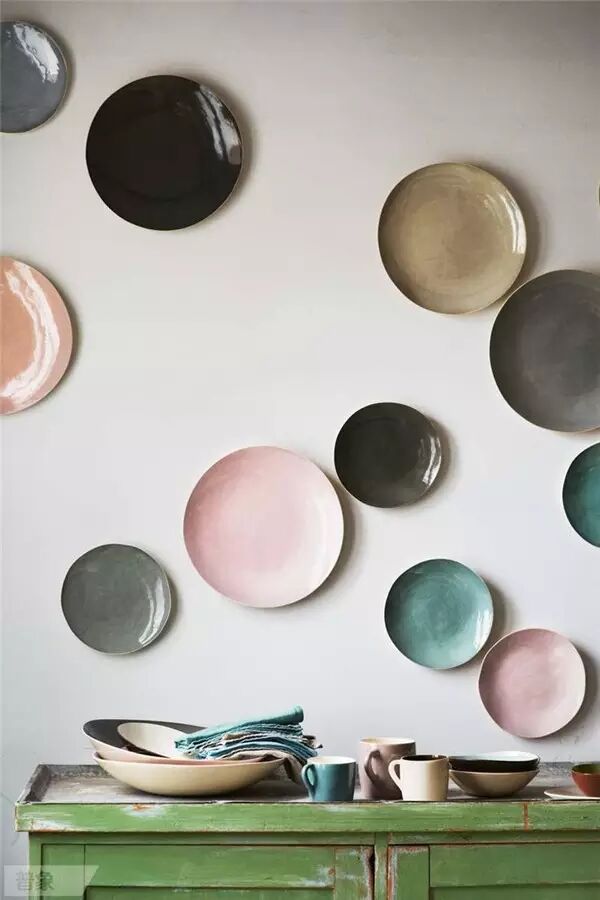 我們曾經(jīng)做過留一面墻掛原作、掛照片以及手繪的選題,這次輪到盤子了。你想過在墻上貼滿漂亮的盤子嗎?設(shè)計好圖案和造型,視覺感受其實不錯!不過…要用好膠水,不然容易拍臉上。