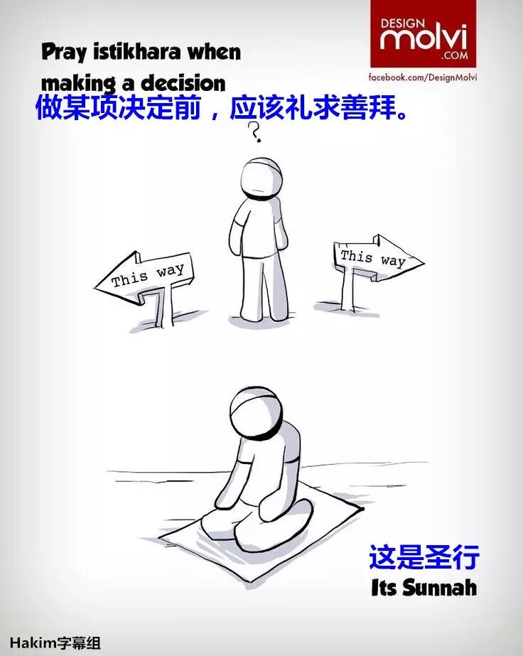 安拉的使者原來教我們爲一切事務做求福拜,好像給我們教《古蘭經(jīng)》的章節(jié)一樣認真。他說:你們中的一個人決意做一件事,讓他禮兩拜非主命拜。
