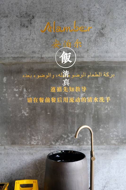 門口左手邊對(duì)安泊爾的簡(jiǎn)介文字中,找到這樣一句話:使安泊爾成為一個(gè)闡釋清真文化內(nèi)涵、體現(xiàn)健康飲食理念的品牌。闡釋清真文化內(nèi)涵是個(gè)很大的概念,做起來(lái)其實(shí)并不容易,但是,轉(zhuǎn)過(guò)頭,看到右手邊簡(jiǎn)約時(shí)尚的洗手池和墻上的文字,心底竟流露出一絲感動(dòng),文字是:遵循先知教導(dǎo),請(qǐng)?jiān)诓颓安秃笥昧鲃?dòng)的清水洗手。