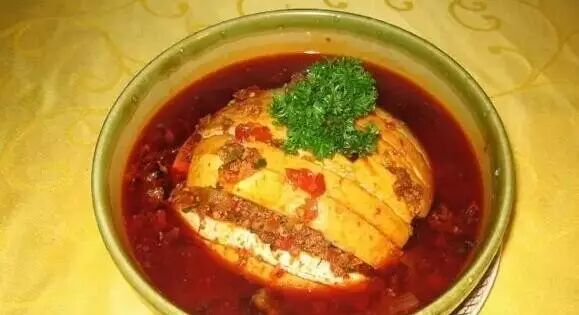 此菜集家常清燉羊肉和傳統糊羊之美味于一碗,先經文火慢燉,再由武火籠蒸兩個多小時,食之湯清肉香,厚而不膩。